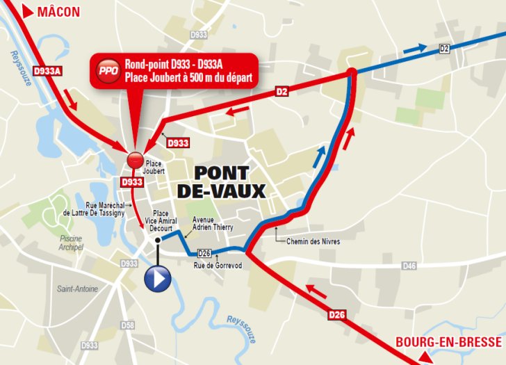 Shortly after rolling down the ramp the teams race a negligible kick up before a left-turn sets them on the route to the first intermediate checkpoint in Romenay at kilometre 14. Amidst pastures and bushes the flat and straight road continues to the second intermediate point in Montpont-en-Bresse at kilometre 24.5. The course doesn’t change in the last 9.5 kilometres, so it’s perfect for a fast race. Flat roads, hardly any turns.