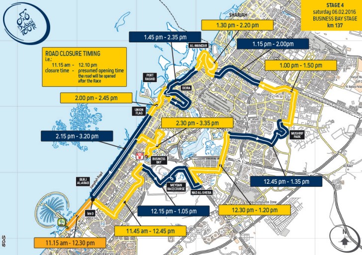Dubai Tour 2016 Route stage 4: Dubai Marine Club – Burj Khalifa