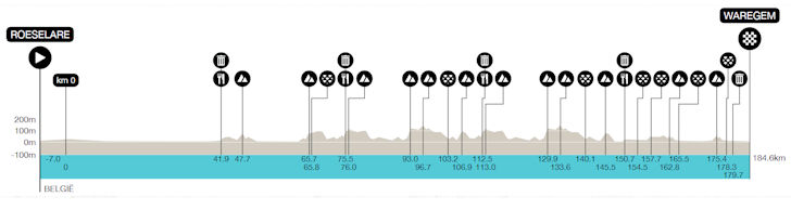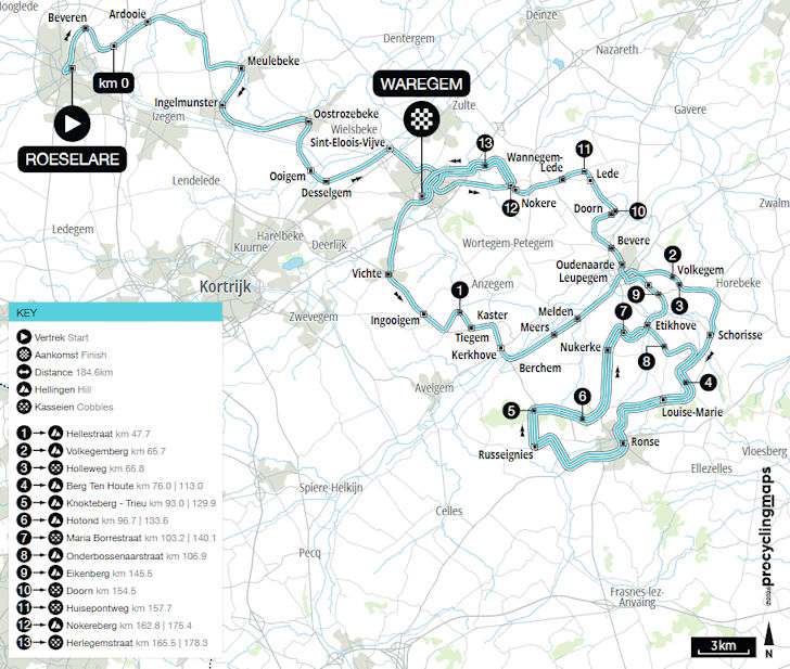 Dwars door Vlaanderen is expected to finish around 16:15 - both local times (CEST). Check the slideshow below for scheduled times, and see the corresponding file for details on the climbs and cobbled sectors.