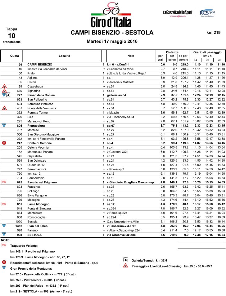 Giro 2016 Stage 10: Route maps, height profiles, etc.