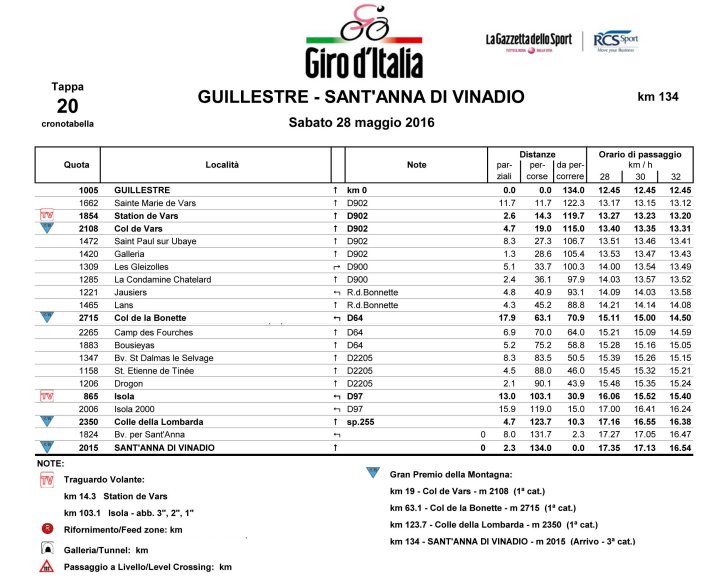 Giro 2016 Stage 20: Route maps, height profiles, etc.