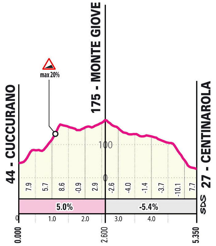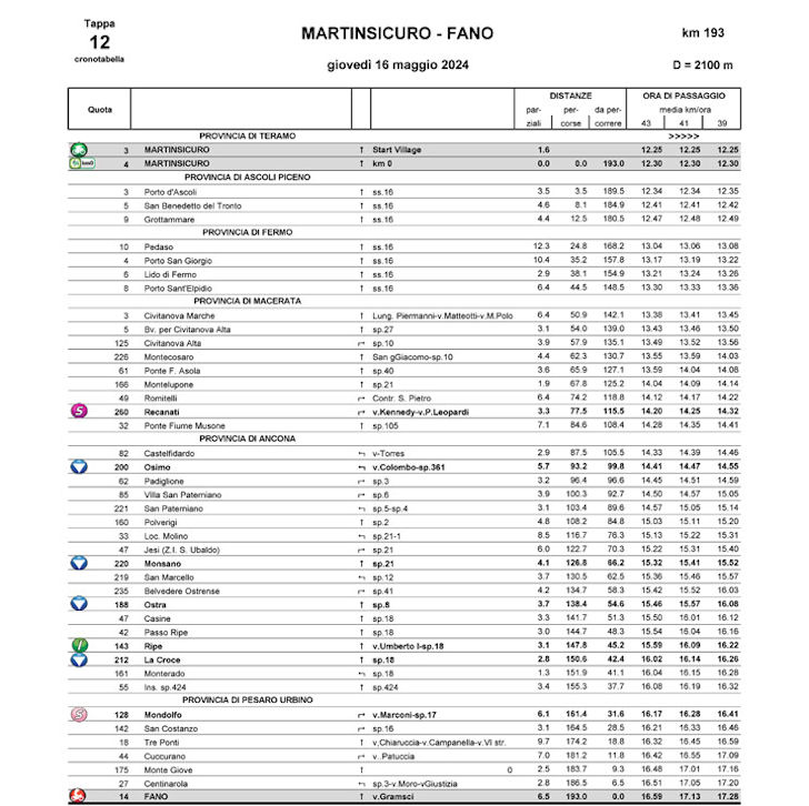 In the hilly zone, Julian Alaphilippe initiates the breakaway, and Jhonatan Narváez, Ewen Costiou, Christian Scaroni, Benjamin Thomas, Simon Clarke, Michael Hepburn, Mirco Maestri, and Edoardo Affini accompany him. While Alaphilippe and Maestri distance the others on the climb to Recanati, with over 120 kilometres left to race, the chase group expands to 36 riders. The two leaders widen their lead over the chasers to more than 2 minutes.