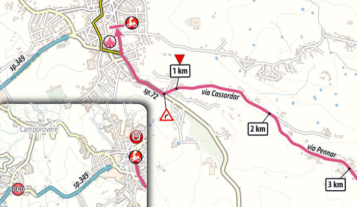 The final intermediate sprint comes halfway up the climb to Dori, 185.8 kilometres into the race, with 6, 4 and 2 bonus seconds up for grabs; at the finish line, 10, 6 and 4 seconds await the first three riders.