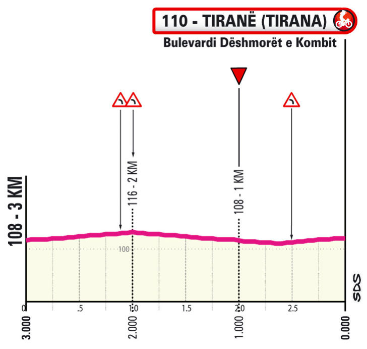 After 5 kilometres, the riders reach the Parku i Madh, or the Grand Park. They ride along the edges before tackling the only climb on the route. It begins with 900 metres at 6.4%, before flattening out. The entire climb rises at an average gradient of 5.7% over 1.2 kilometres.