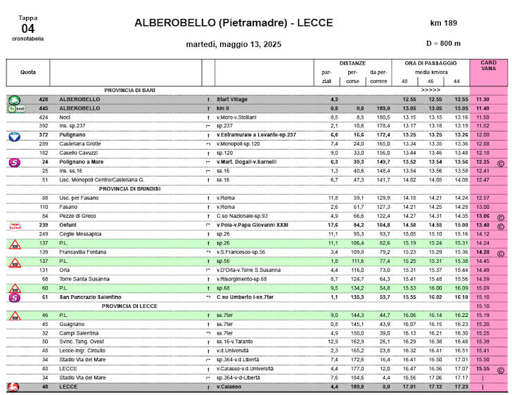 Giro 2025 Route stage 4: Alberobello – Lecce