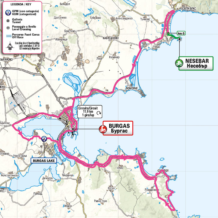 Giro 2026 Route stage 1: Nesebăr – Burgas