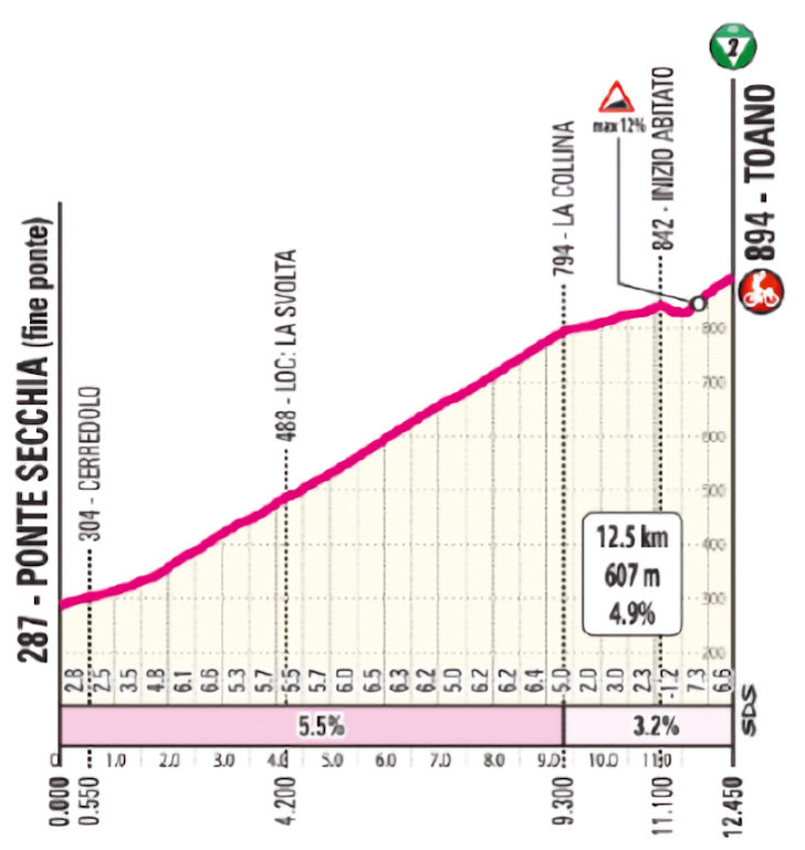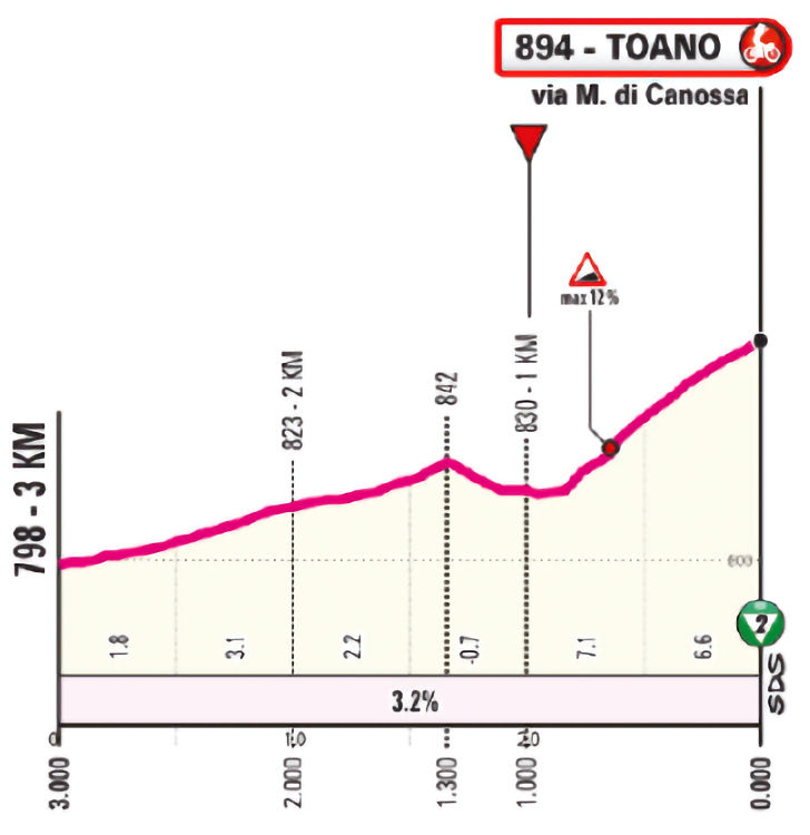 That covers virtually all details for the 3rd stage. The approach towards the finishing climb to Toano is flat