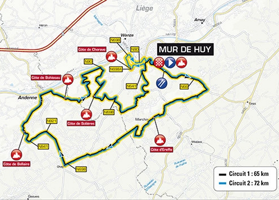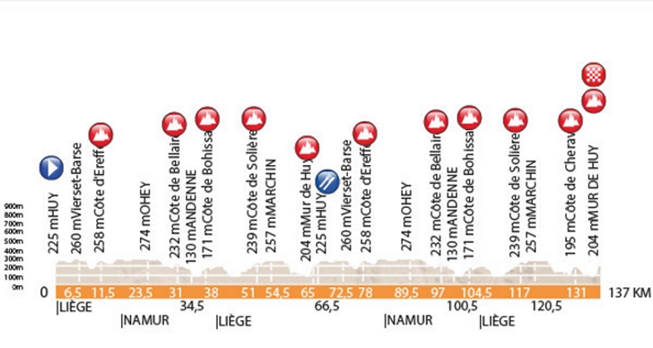 Route and profile Mûr de Huy