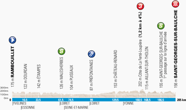 Monday, March 10 – In the 2nd stage the bunch heads from Rambouillet to Saint-Georges-Sur-Baulche. A mostly flat , 205 km ride, with a couple of bumps that shouldn't worry the sprinters. (Slideshow route/profile)