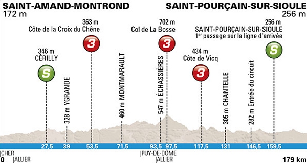Wednesday, March 11, 2015 – In 179 kilometres stage 3 in Paris-Nice travels from Saint-Amand-Montrond to Saint-Pourçain-sur-Sioule. Rolling landscapes and an interesting finale with a 4.5% ascent in the last 475 meters.