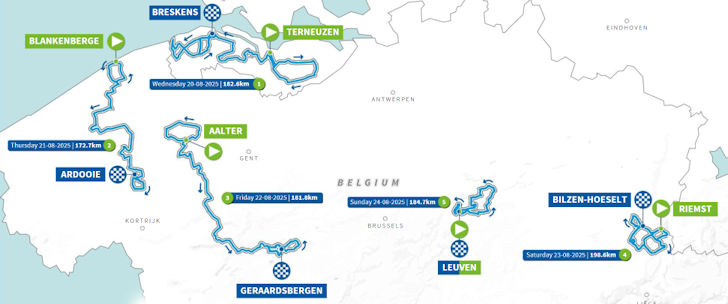 Related articles Route + results stage 2: Blankenberge – Ardooie - Renewi Tour 2025 Route + results stage 3: Aalter – Geraardsbergen - Renewi Tour 2025 Route + results stage 4: Riemst – Bilzen-Hoeselt - Renewi Tour 2025 Route + results stage 5: Leuven – Leuven - Renewi Tour 2025 More articles Giro 2026: Route
