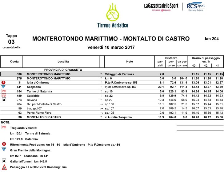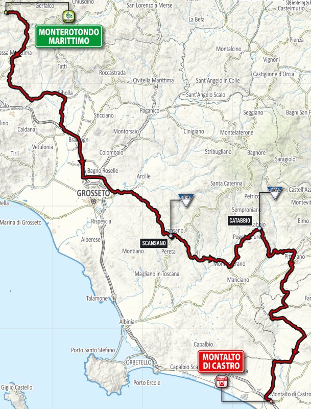 Tirreno-Adriatico 2017 Route stage 3: Monterotondo Marittimo – Montalto di Castro