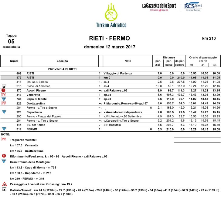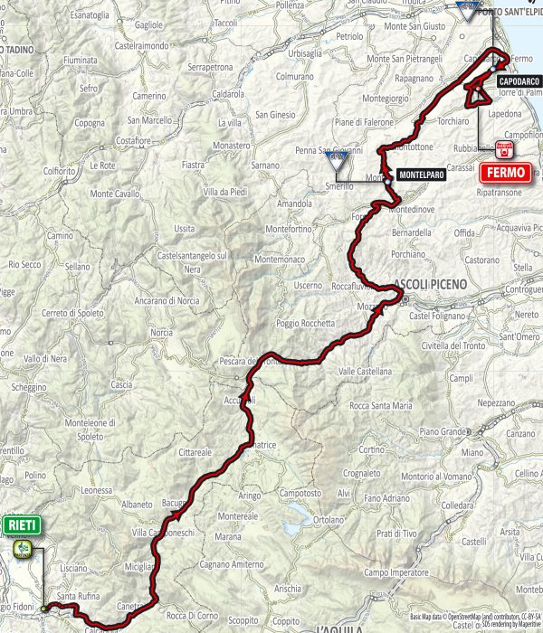 Tirreno-Adriatico 2017 Route stage 5: Rieti - Fermo