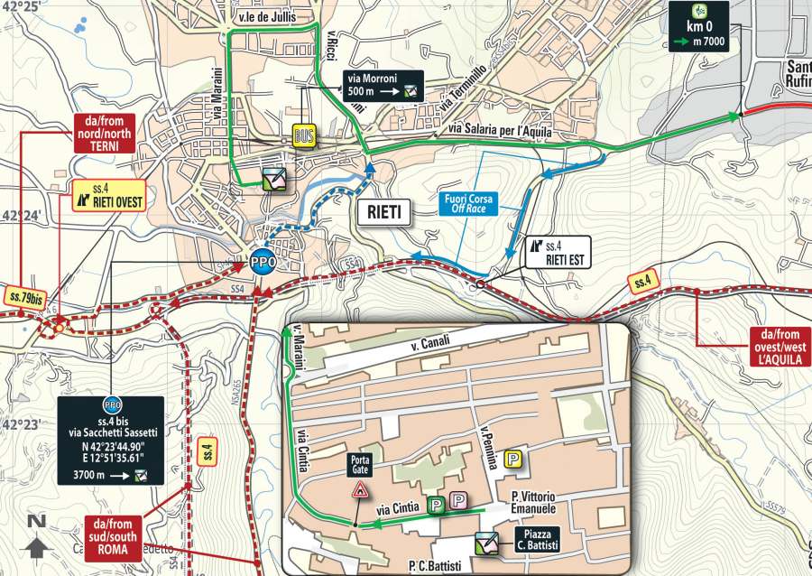 The race leaves from Rieti, which is located at an elevation of 400 metres. A long-stretched climb of 43 kilometres takes the riders to 1,000 metres before an even longer descent stops at kilometre 100. Now it's time for the undulating to rugged second half of the race.
