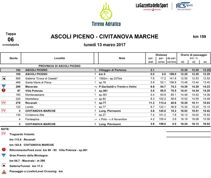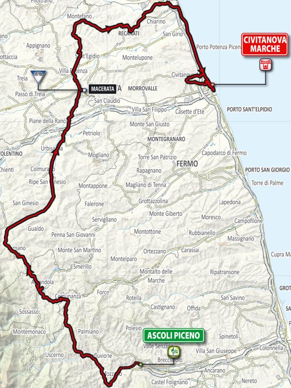 Tirreno-Adriatico 2017 Route stage 6: Ascoli Piceno - Civitanova Marche
