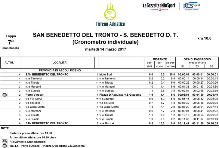 Tirreno-Adriatico 2017 Route stage 7: ITT in San Benedetto del Tronto