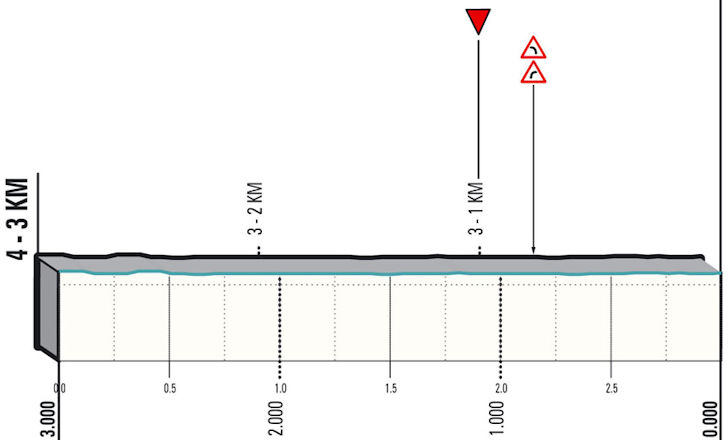 A 13 kilometres descent takes the riders down to Grottammare and they enter a pan-flat circuit of almost 15 kilometres. The lap is to be repeated five times before an inevitable bunch sprint at the same place where the ITT's of the recent past used to start.