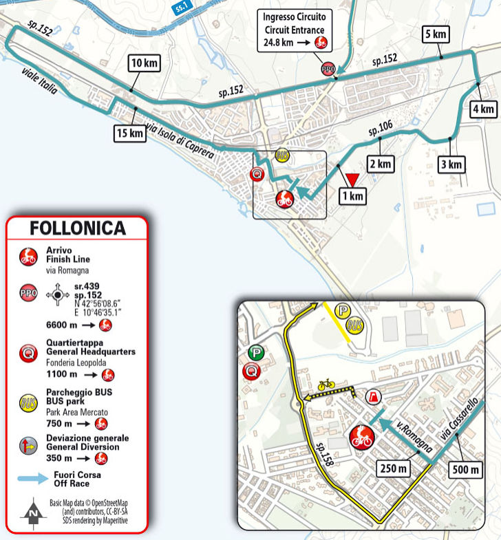 Follonica also hosted a Tirreno-Adriatico stage finish in 2018. That race came down to a bunch sprint as well with Marcel Kittel outpowering Peter Sagan and Giacomo Nizzolo.