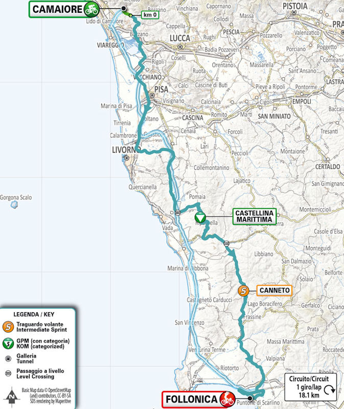 Tirreno-Adriatico 2024 Route stage 2: Camaiore – Follonica