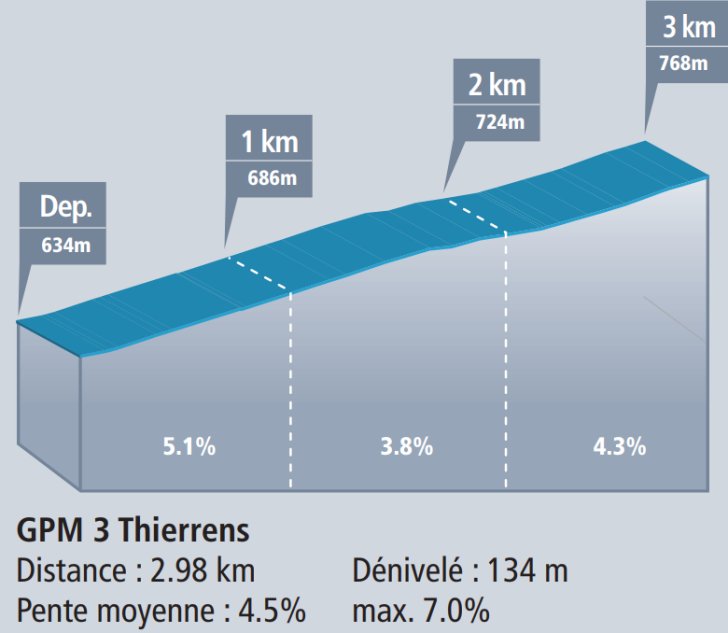 The last stage of this year’s Tour de Romandie starts in Mont-sur-Rolle, which lies 35 kilometres north of Geneva. The route sets off in the other direction for an large inland loop with three climbs. The first one leads to Mont-la-Ville (3.6 kilometres at 4.9%), the second to Suchy (1.9 kilometres at 6.4%) and the third to Thierrens (3 kilometres at 4.5%). In that last village there are still more than 100 kilometres to race, mostly on rolling roads. The final kilometres run along Lake Geneva and are flat.