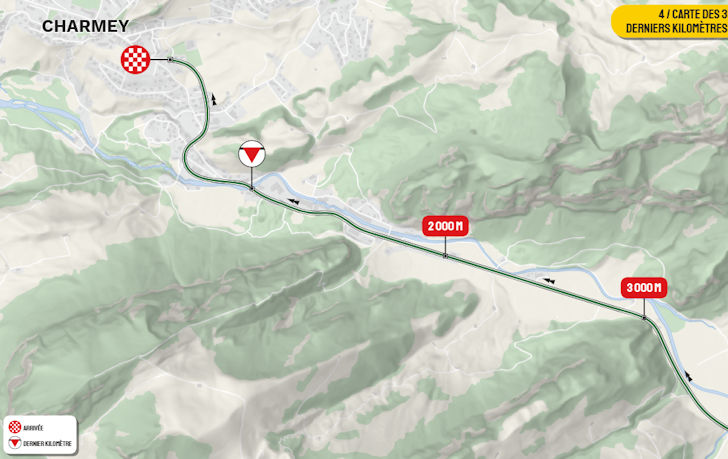 The riders fly down the Saanenmöser to Garstatt, and shortly afterwards the Jaun Pass reappears. The final ascent is taken from the same side as the second ascent, although they start slightly earlier, making it an 8.1-kilometre effort at 8.3%. From the summit, there is a 16.7-kilometre descent to the finish in Charmey.