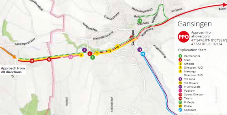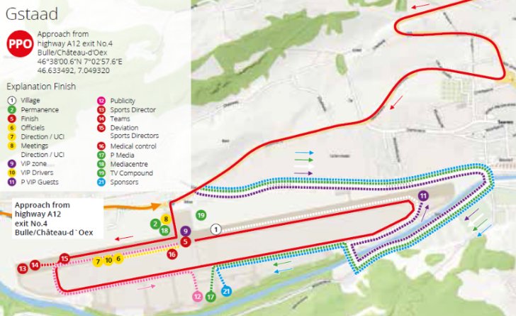 The races finishes on Saanen Airport, just outside of Gstaad. Five times before the Tour de Suisse finished in in Gstaad. In 1994, 1972, 1969, 1951 and 1950, so it's been a while.