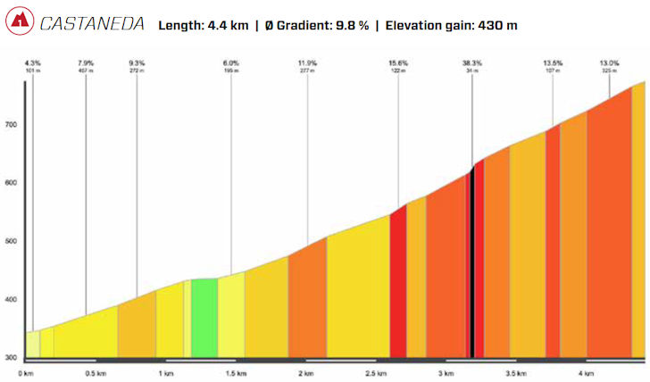 At the summit of the pass, only Bilbao, Powless and Romo remain at the head of the race, while Aleksandr Vlasov and Lorenzo Fortunato have replaced the others. The peloton is still close behind, but the gap widens on descent and by the time the attackers reach the valley the gap is 2 minutes.
