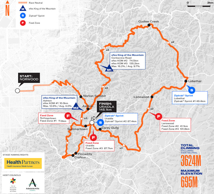 Tour Down Under 2026 Route stage 2: Norwood - Uraidla