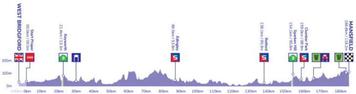 | 6 | 9-9 | Tour of Britain 2022 route stage 6 | 170.9 | hills | |||
