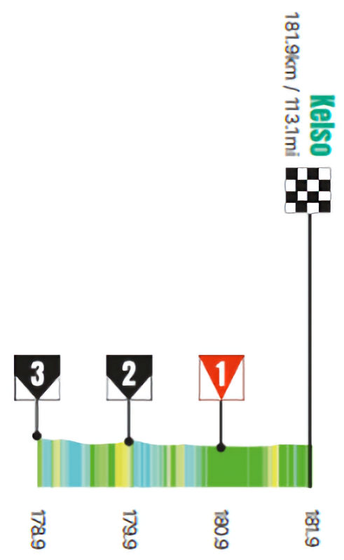 The Kelso stage takes place entirely within the Scottish Borders. It features several laps and passes through Coldstream, Gordon, Melrose, Denholm, Jedburgh and St Boswells. There are five KOM sprints, while the route takes in an elevation gain of 2,381 metres.