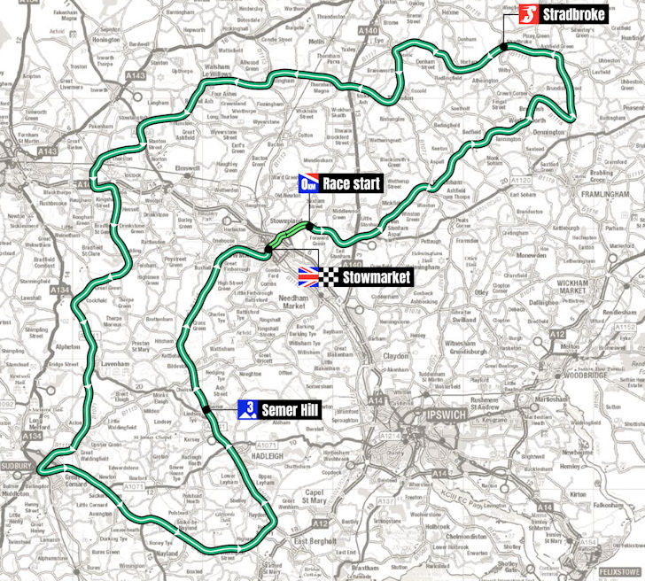 Stage 3 of the Tour of Britain is expected to be the last chance for the pure sprinters. The run-in to the flamme rouge drags slightly uphill, but overall the parcours is as flat as the first two days.