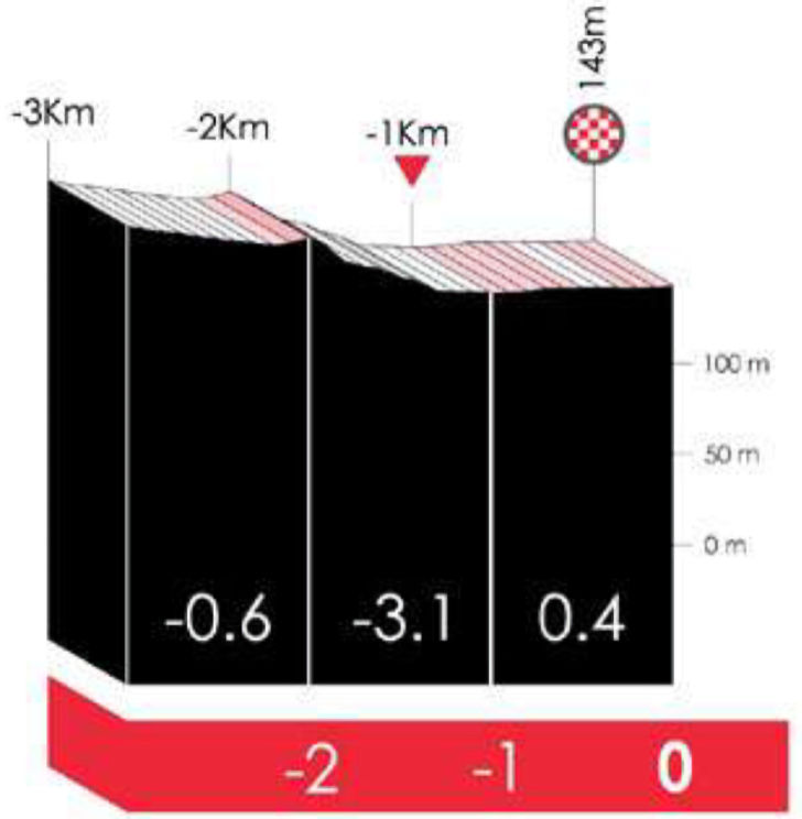 At the penultimate passage of the finish line, the riders take on a smaller loop south of the start and finish town. It's 19 kilometres long and begins with a false flat section that soon turns into the second ascent of the Asentzio. The first climb of the day is now taken from another side, measuring 7.2 kilometres at 5.2%, though the second half is by far the steepest. The final kilometre even ramps up to almost 10%.