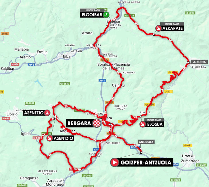 Tour of the Basque Country 2026 Route stage 6: Antzuola - Bergara