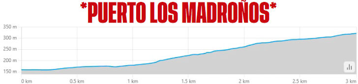 The first three riders at the finish gain time bonuses of 10, 6 and 4 seconds; the intermediate sprint at the Puerto de los Madroños offers bonuses of 3, 2 and 1 seconds.