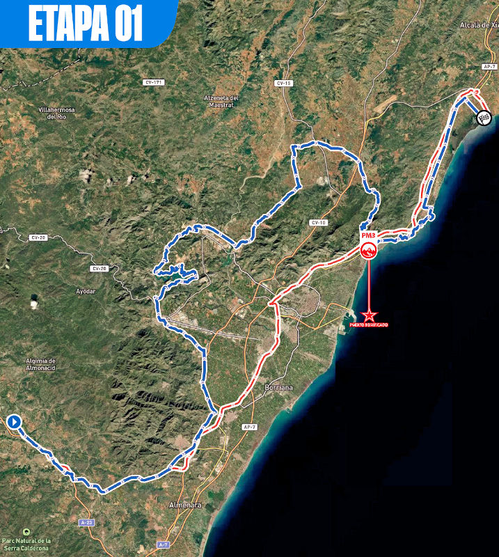 From the summit, the road descends towards the Mediterranean Sea, before two short uphill sections appear just before Orpesa. The riders then cover the final 22 kilometres on flat coastal roads to the finish in Torreblanca.