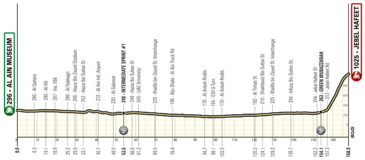 Saturday 21 February – Stage 6 of the UAE Tour is a 168-kilometre test with the finish atop Jebel Hafeet. Following a flat approach, the finishing climb stretches 10.8 kilometres at an average gradient of 6.6%.