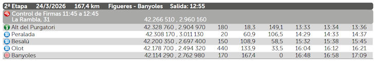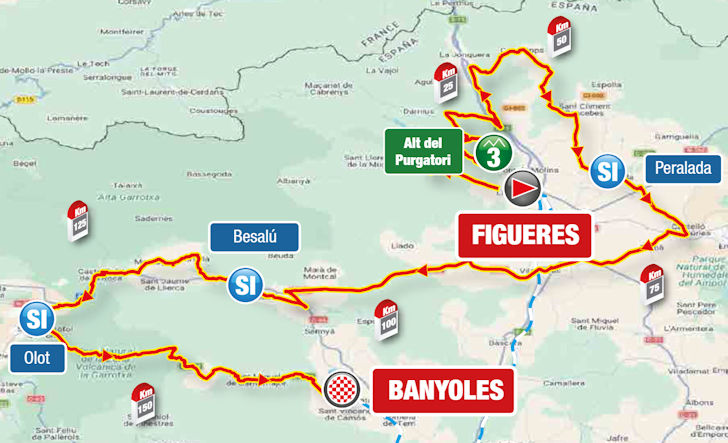 Volta a Catalunya 2026 Route stage 2: Figueres - Banyoles