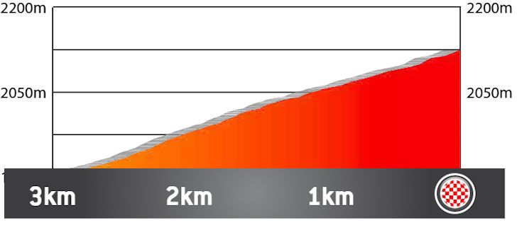 After that, there are no official climbs for dozens of kilometres, but that doesn’t mean the roads are flat. After all, those 4,000 metres of climbing have to come from somewhere. The route undulates constantly — and overall trends uphill — before the final 60 kilometres only gp up. First comes an endless false flat, and in the last 11.4 kilometres the road to Vallter averages 7.6%. The first takes most of the elevation, while the steepest section hits 18%.