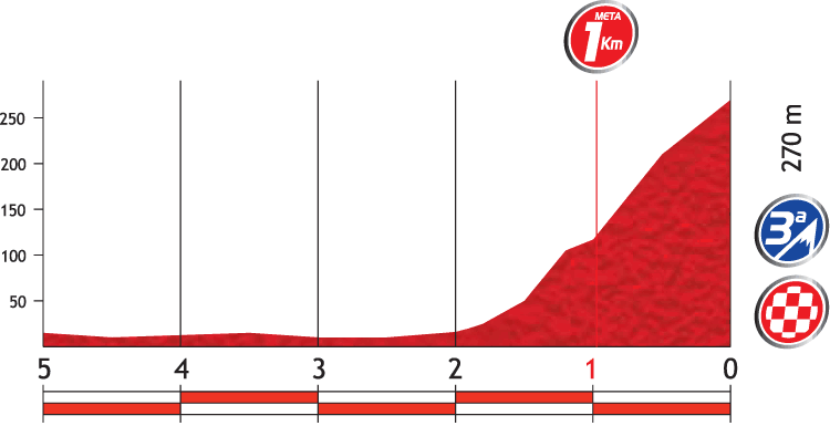 Stage 3 opens with a more or less flat section of 110 kilometres before the Alto de Lestaio looms. Upon cresting a flat section of around 10 kilometres takes the riders to an uncategorised climb that’s leading to the highest point of the day, located at an elevation of 535 metres. Only then they plunge down to sea level.