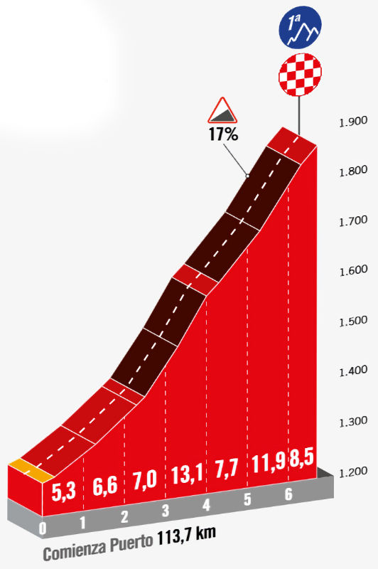 From there, the route heads to the intermediate sprint in Quintanar de la Sierra, before continuing on a false flat towards the base of the Alto de Rozavientos — a 4-kilometre drag with an average gradient of 8.1%.