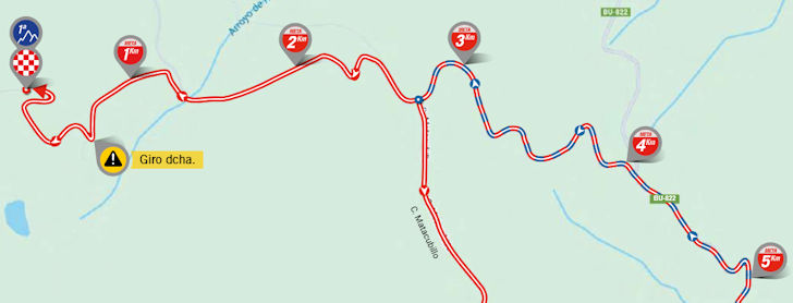 The first half of the route doesn’t offer much in the way of difficulty. The riders spend that entire stretch on the N-234, covering flat to gently rolling terrain. Only after leaving the main road at Hontoria del Pinar do the undulations become a bit more pronounced. The first climb is 3.1 kilometres at 4.2% (uncategorised), with the summit coming after 77 kilometres.